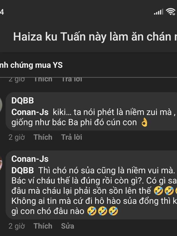 DQBB Thì chó nó sủa cũng là niềm vui mà. Bác ví cháu thế là đúng rồi còn gì?. Có gì sai đâu mà cháu lại phải sồn sồn lên thế 🤣🤣🤣. Không ai tin mà cứ đi hô hào sủa đổng thì khác gì con chó đâu nào 🤣🤣🤣