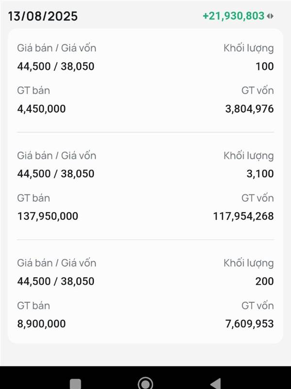 Mình bán hết lúc 44.5 rồi. Giờ vào lại !