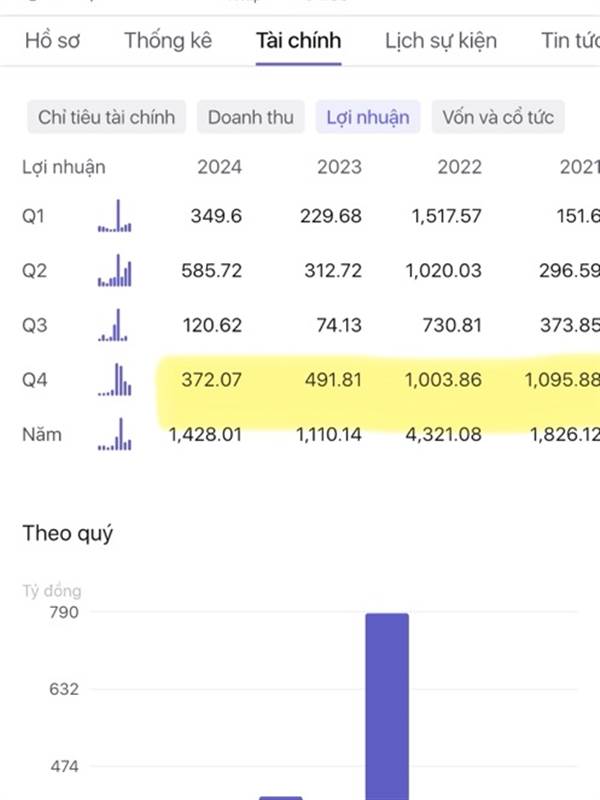 Dốt ***** ra, quý 4 nào thấp điểm, thường q4 nó lãi rất to nên nhiều năm k bằng năm ngoái. Chứ so với những quý đầu năm 4 thường to nhất