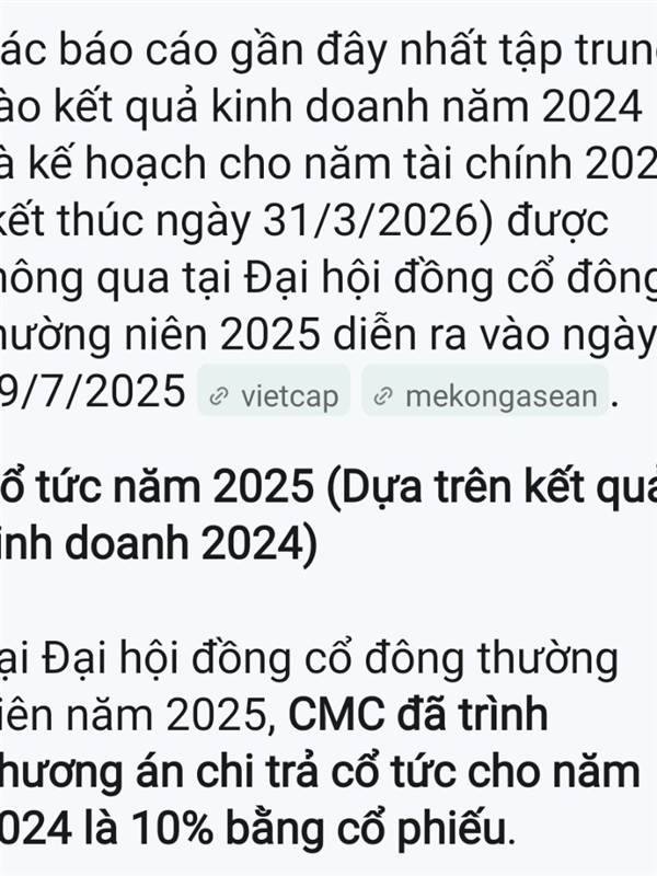 em mới tới chơi thì cuối quý 3 đầu quý 4 chia cổ tức là hợp lý còn gì. lịch sử thì CMG chia cổ tức tháng 12.
