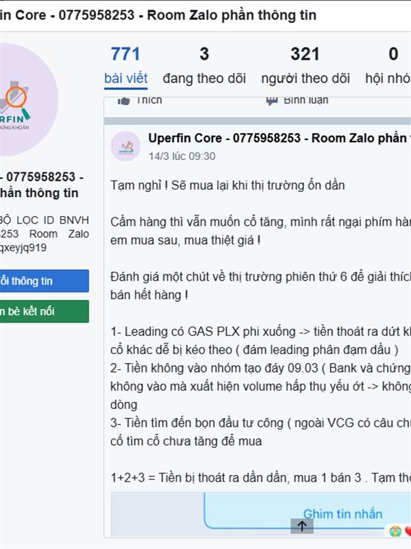 Uperfin Core - 0775958253 - Room Zalo phần thông tin haha tưởng sợ mất khách