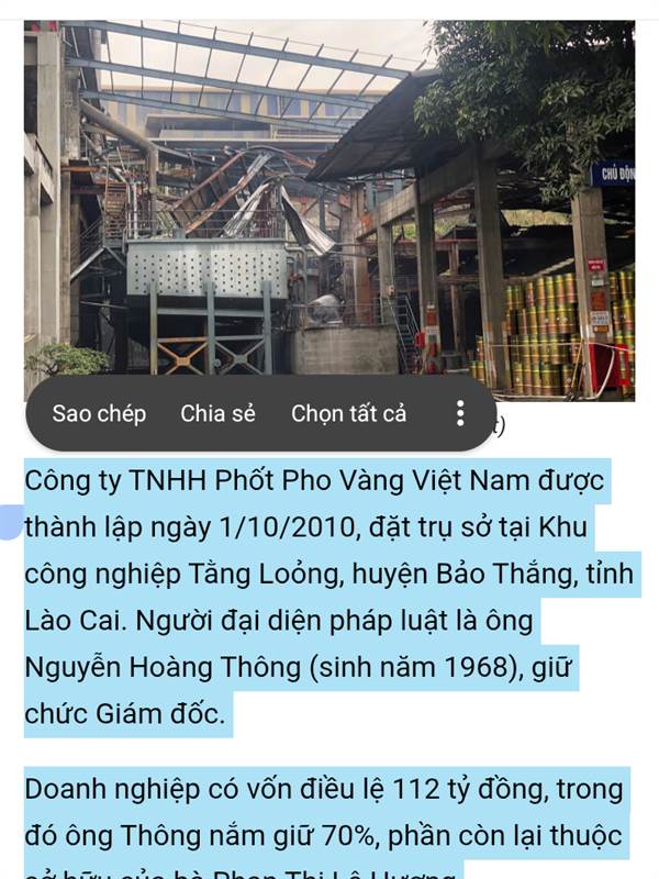 Vnexpress ghi rõ xay ra taj cty photpho vang Pat