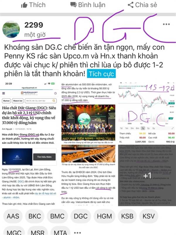 Khoáng sản DG.C chế biến ăn tận ngọn, mấy con Penny KS rác sàn Upco.m và Hn.x thanh khoản được vài chục k/ phiên thì chỉ lùa úp bô được 1-2 phiên là tắt thanh khoản!