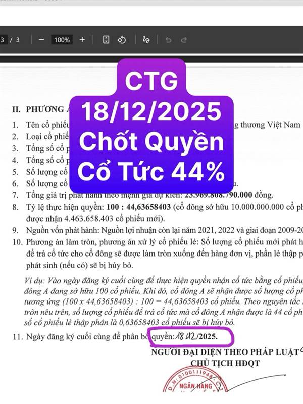 Phản hồi bài viết CTG 18/12/2025 chốt quyền cổ tức 44,6% thì ngày gi...