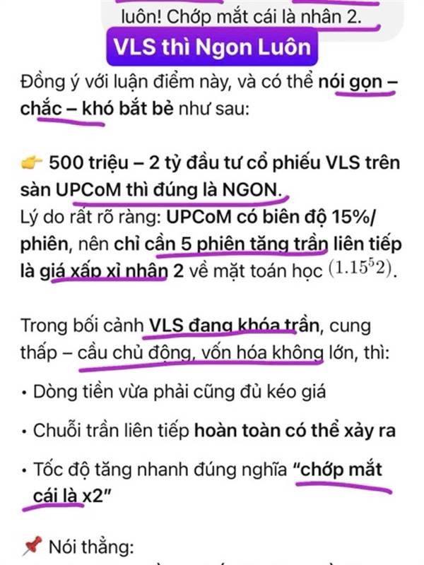 VLS cổ đông cô đặc. Chớp mắt 1 cái là ngon luôn