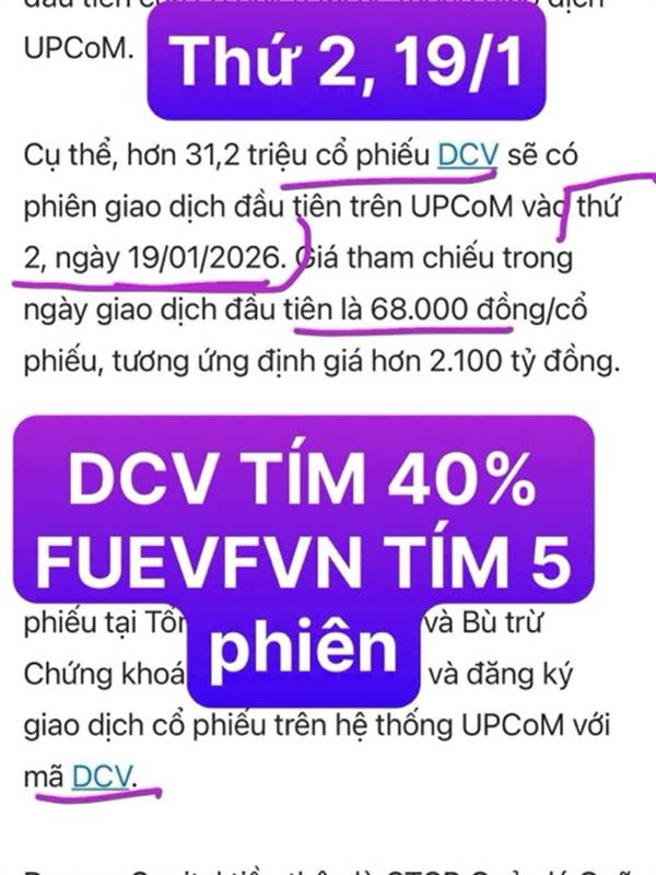Cổ phiếu Dcv dự kiến ít nhất 4-5 cây tím khi chào sàn upcom. Giá có thể chạm 15x-16x