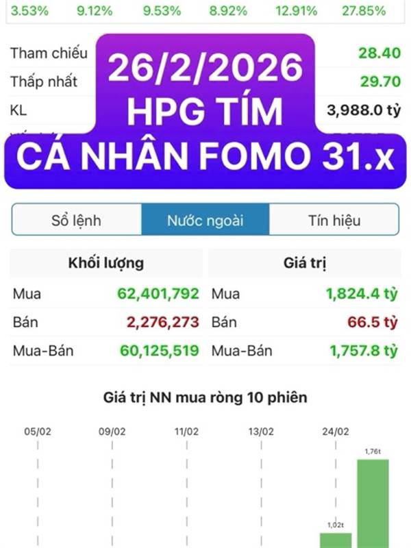 26/2/2026: HPG TÍM! Cá Nhân nay úp bô ngoại gần 1k...