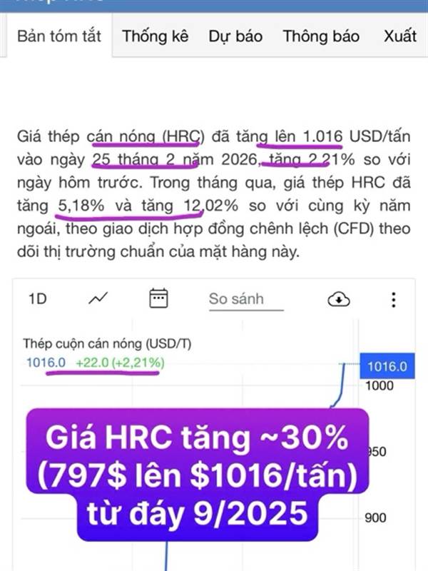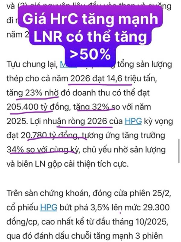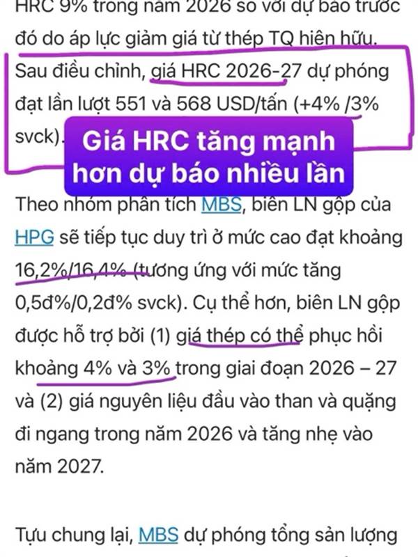 Lnr của Hpg có thể tăng trên 50% cao hơn nhiều so với dự phóng của mbs do giá hrc đang cao gần gấp đôi dự báo