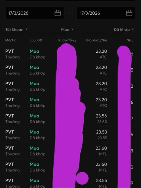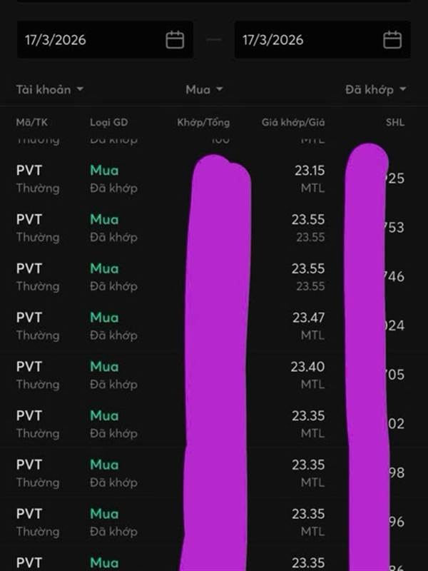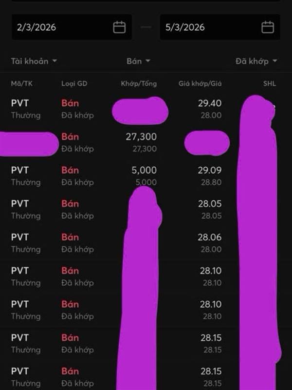 PVT đã Tím. Vòng 1 mua 24.x chốt 29.x. Vòng 2 mua 23.x chốt 27.x, ăn 2,5-3 cây Tím!