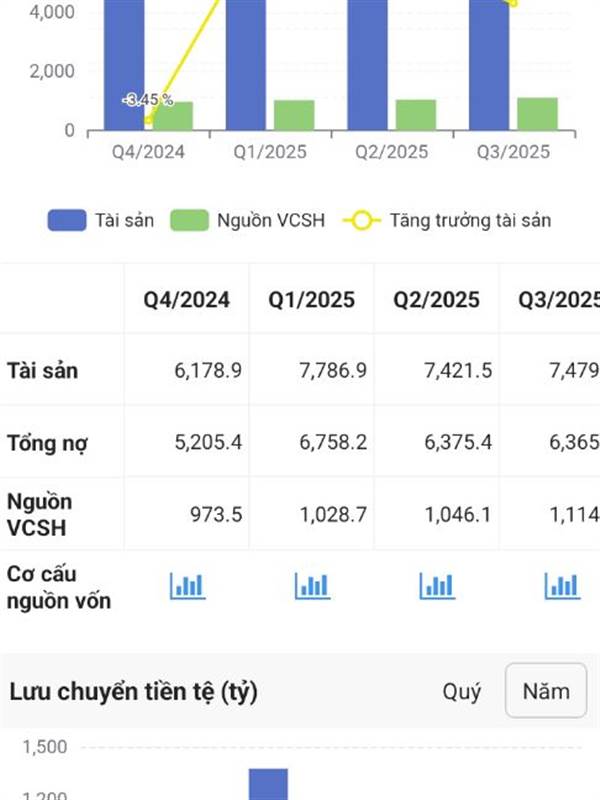 Vậy nó thống kê láo à. Tỗng ts hơn 7.400 tỷ. Mà vcsh có hơn 1.100 tỷ