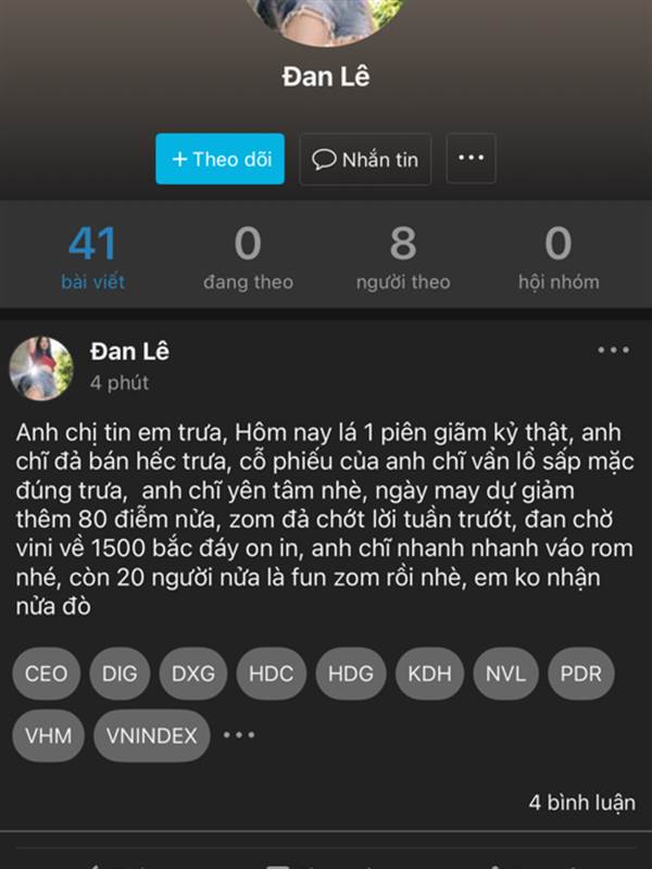 Anh chị tin em trưa, Hôm nay lá 1 piên giãm kỷ thật, anh chĩ đả bán hếc trưa, cỗ phiếu của anh chĩ vẩn lổ sấp mặc đúng trưa, anh chĩ yên tâm nhè, ngày may dự giảm thêm 80 điễm nửa, zom đả chớt lời tu...Thêm