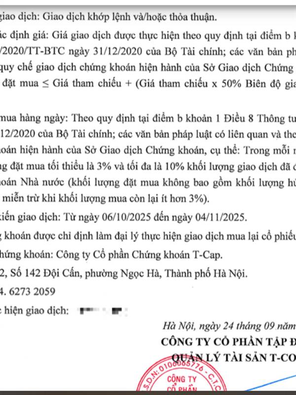 6.10 công bố thông tin mua, 13.10 mới bắt đầu hình trình mua