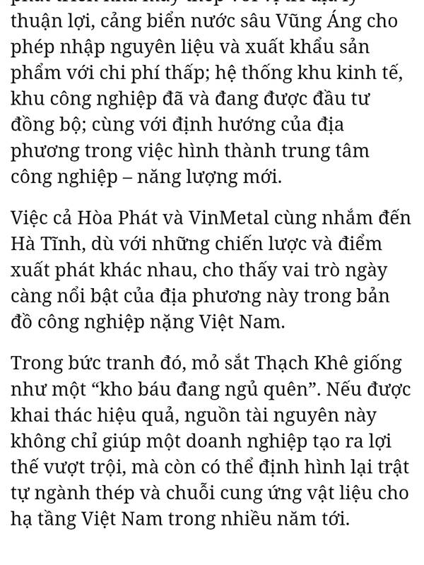 Vin thâu tóm được MTA đổi lại là quyền khai thác mỏ sắt Thạch Khuê. Cả Vin và UBND Hà Tĩnh (Nhà nước) ai cũng đều có lợi. Nghe đâu bán cho Vin 20% cổ phần trước.