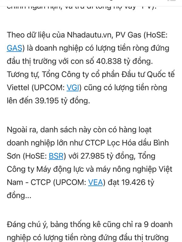 Vgi có trữ lượng tiền mặt lớn thứ 2 tại các cty niêm yết trên sàn vn hiện nay sau gas, trong bối cảnh lãi suất tăng trở lại thì nó ko làm vẫn có ăn nhé các e🤣