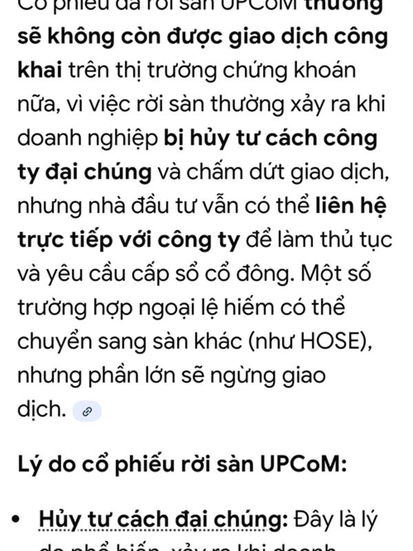 Không còn ở Upcom thì chuyển san giao dịch OTC, vẫn còn thể hiện nắm giữ cổ phần. Khi nào công ty tuyên bố phá sản mới mất trắng.