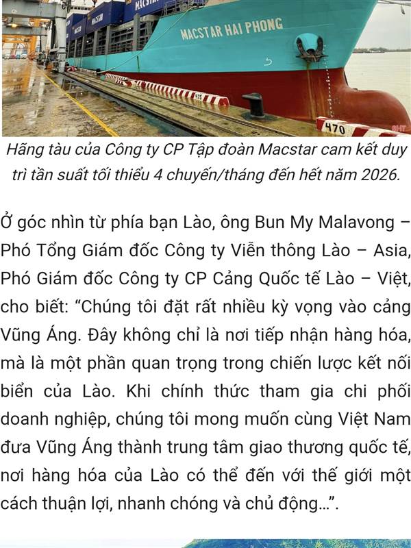 Lào sẽ đẩy rất mạnh 3 cảng ở Vũng Ánh.