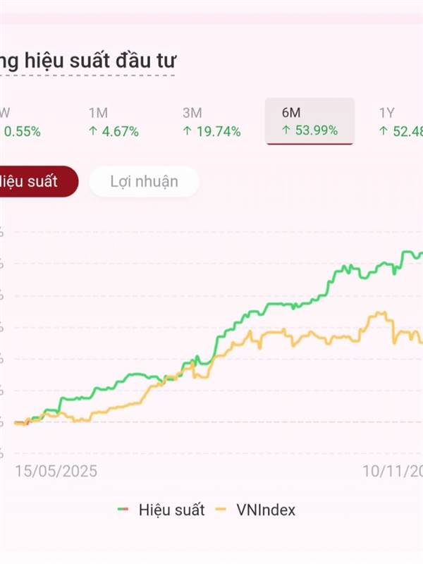 Nhìn hiệu suất bác thì chắc cũng cầm cổ Vin, Gelex hoặc ăn trọn sóng CK à. Tăng như này là gấp đôi thị trường r