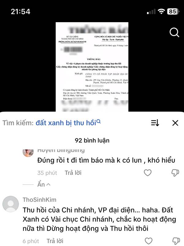 Tím Rịm bạn không thấy ra thông báo thu hồi thương hiệu rồi à, Đất Xanh giờ không liên quan nữa