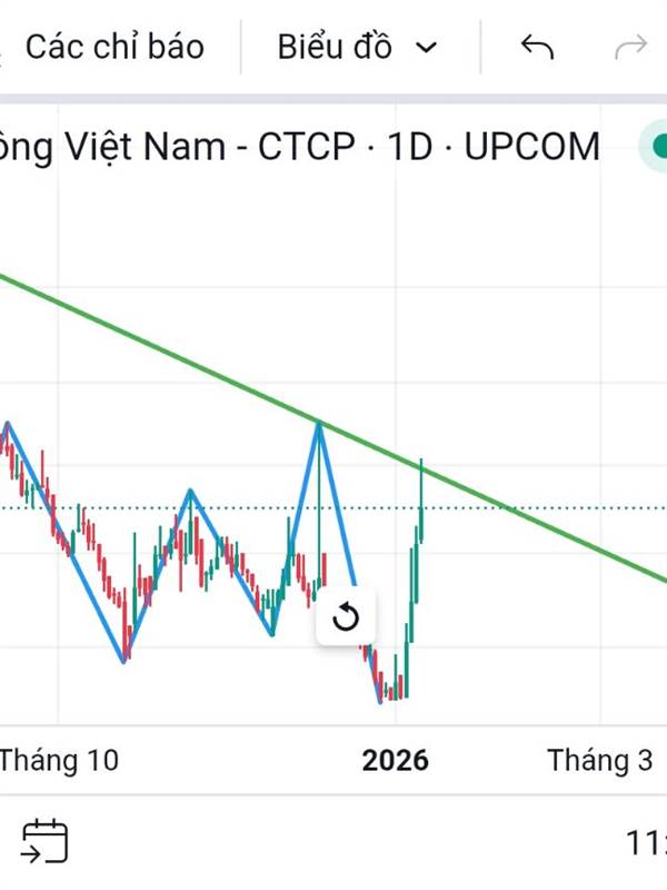 Nguyen Canh Taget chủân là 59 do giá đã chạm vào trendline. Tui đã bán hết chờ nó phản ứng vs trendline thế nào! Nếu về lại 53 thì vô mua lại không thì thôi