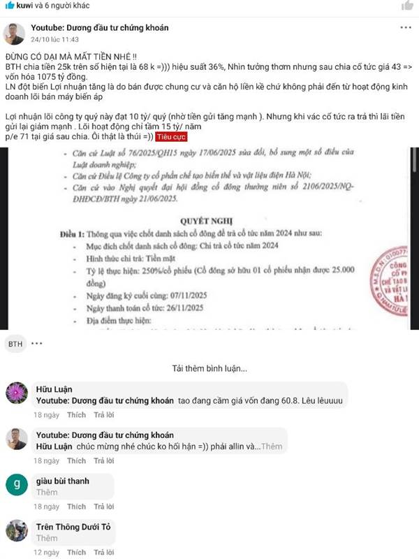 Youtube: Dương đầu tư chứng khoán Yagi cục bộ thôi. Năm nay bắc trung nam đều dính đạn liên tục