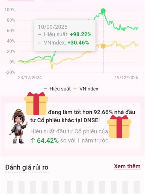 Khai Le Đây bạn , lúc phong độ nhất gần 100 % , mấy tháng nay không dám mua VIC nên còn 64 % thôi .