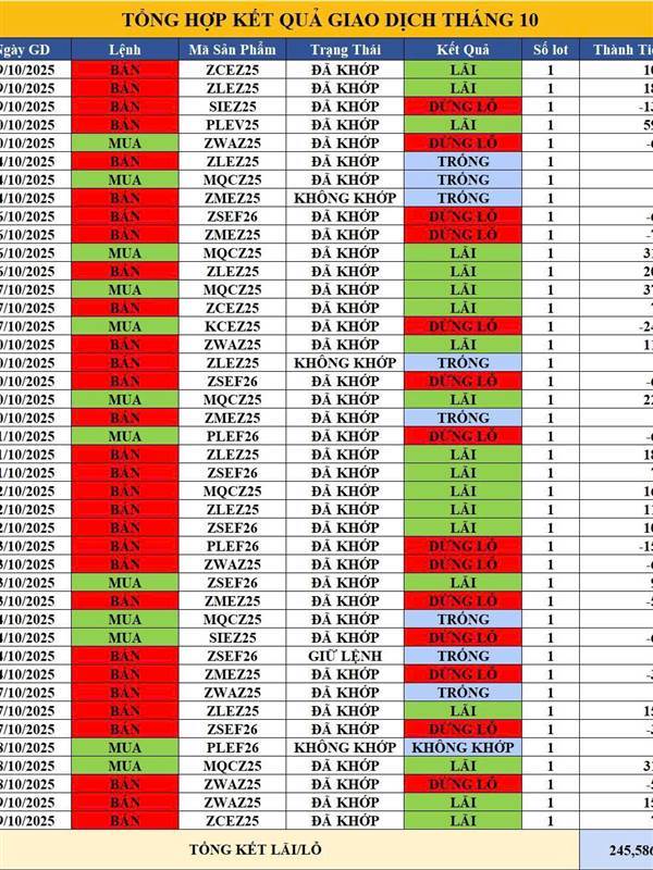 💥Bảng Tổng hợp kết quả giao dịch theo khuyến nghị Tháng 10 ạ.