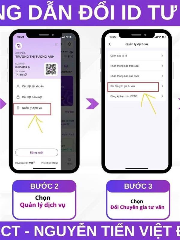 2️⃣ Chọn mục "Thay đổi chuyên gia tư vấn".