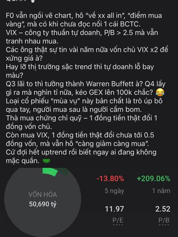 Mr Gà gex dự kiến đấu giá ipo tháng 11-12 . Nếu đc sớm nhất thì tháng 1 niêm yết thì nó rơi vào Quý 1 rồi thằng nguu . Rồi lúc ấy liệu gex tăng giá ko hay lại về 3x . Hẹ hẹ . Thôi tránh xa vix ra