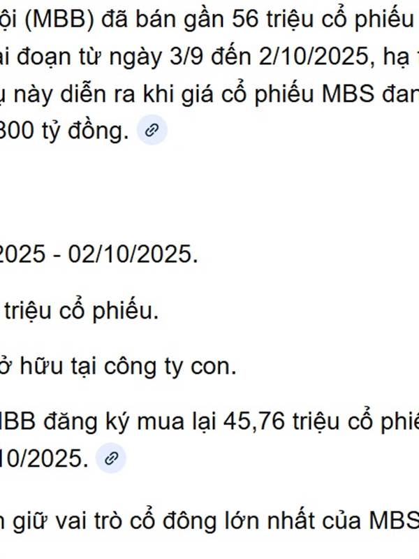 Anti Cổ Tăng Láo MBB thông báo bán rõ trước lúc làm nhé, cổ đông lớn không bán chui đâu.