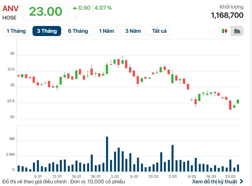 Hiện tại, ông Thiên đang nắm giữ 1.141.998 cổ phiếu ANV, tương đương tỷ lệ 0,43% vốn điều lệ. Nếu thương vụ mới hoàn tất thành công, lượng cổ phiếu nắm giữ của con trai Tổng giám đốc Doãn Tới sẽ tăng lên mức 2.141.998 đơn vị, tương ứng 0,8% vốn.