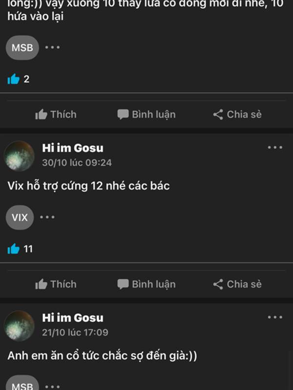 Hi im Gosu :) đúng rồi… chốt lãi vào mồm bọn ng u đu mua ăn cổ tức tao vui lắm 😄😄😄😄