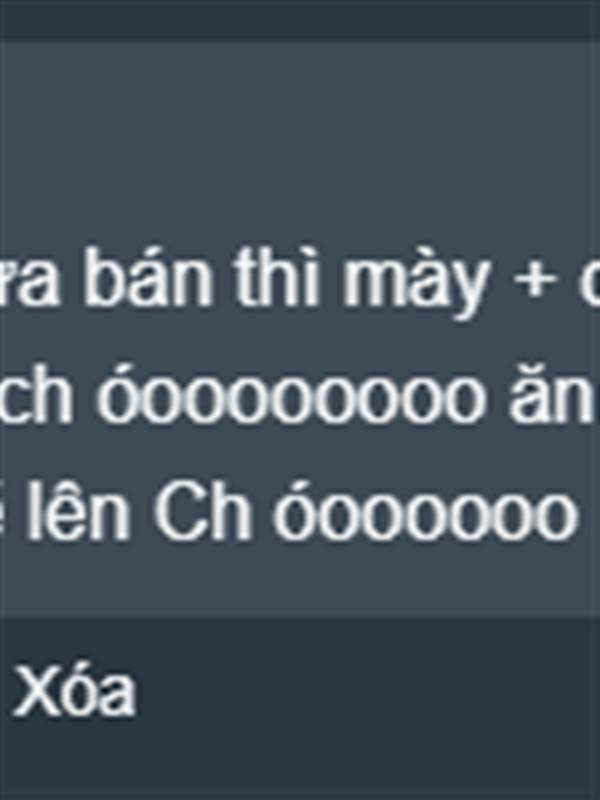 Hi im Gosu Mày xứng đáng là 1 loại chóoooooooooooooooo ko cần bảo tồn. vừa ăn cháo *** bát và là khổ cả nhà ăn cứtttttttttttttttttttt quanh năm. suốt ngay đi theo để ăn ké nhưng mõm lại cắn như một con chóooooo...Thêm