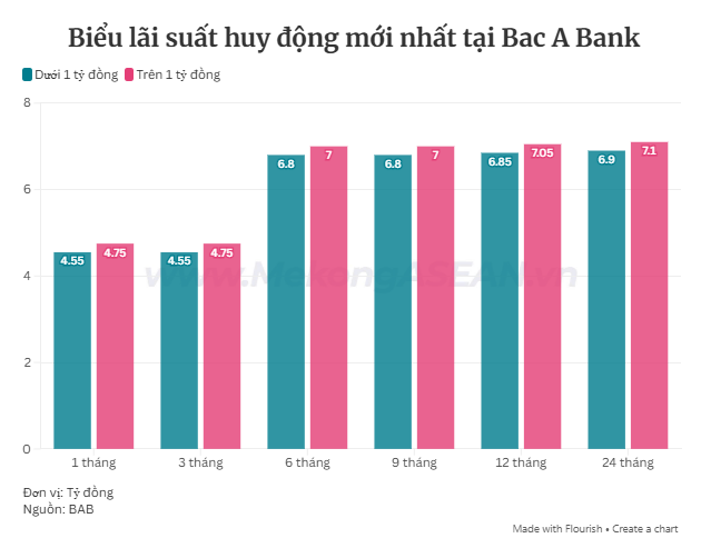 Với các khoản tiền gửi có kỳ hạn từ 18 đến 36 tháng, lãi suất đã được nâng từ 6,7% lên 6,9%/năm – mức cao nhất mà Bac A Bank áp dụng đối với khách hàng cá nhân gửi tiết kiệm dưới một tỷ đồng.