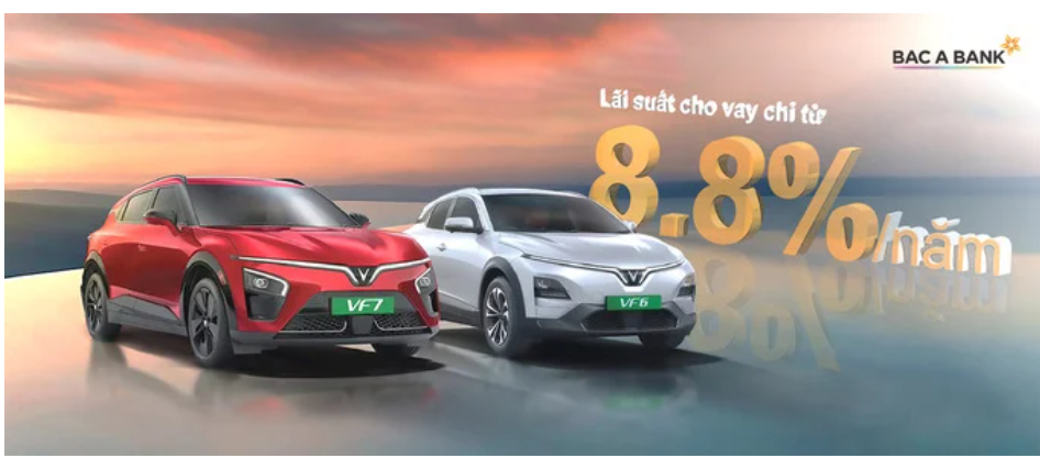 Theo đó, Khách hàng có nhu cầu vay mua ô tô điện VinFast để phục vụ đi lại hoặc kinh doanh có thể lựa chọn gói tín dụng hấp dẫn từ BAC A BANK: thế chấp bằng chính xe mua với mức vay tối đa lên đến 70% giá trị xe, thời hạn vay tối thiểu 60 tháng với lãi suất ưu đãi chỉ từ 8,8%/năm trong 12 tháng đầu tiên.