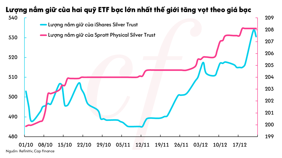 Dù khác nhau như vậy, việc cả hai quỹ đều tăng lượng nắm giữ bạc, đều cho thấy các nhà đầu tư đang có nhu cầu nắm giữ ccq ETF bạc ngày càng tăng.