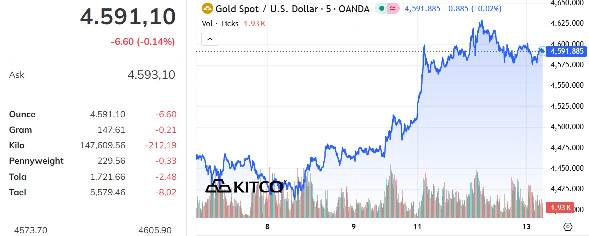 Giá bạc đã tăng 13% trong 13 ngày đầu năm 2026, nối tiếp đà tăng kỷ lục hơn 150% trong năm 2025. Trong phiên giao dịch ngày thứ Ba, bạc đứng ở mức gần 85 đô la, trong khi vàng tìm được hỗ trợ quanh 4.588 đô la sau khi có thời điểm đạt trên 4.600 đô la.