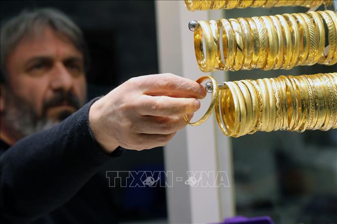 Trang sức vàng được bày bán tại tiệm kim hoàn ở Ankara, Thổ Nhĩ Kỳ. Ảnh: THX/TTXVN