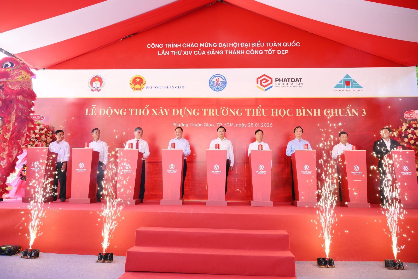 Sáng ngày 28/01/2026, Phát Đạt đã chính thức tổ chức lễ động thổ xây dựng Trường Tiểu học Bình Chuẩn 3 tại phường Thuận Giao.