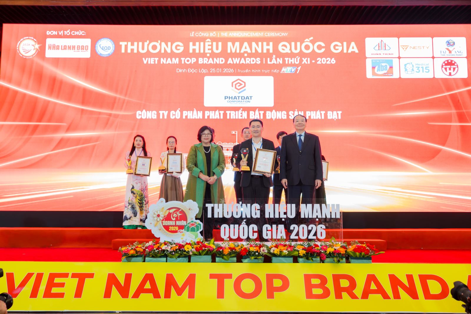 Vào ngày 25/01/2026, Phát Đạt chính thức được vinh danh trong “Top Thương hiệu Mạnh Quốc gia” lần thứ XI nhờ những thành tích xuất sắc trong kết quả kinh doanh, năng lực đổi mới và cam kết phát triển bền vững (ESG).