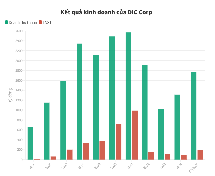 Nhờ đó, lợi nhuận sau thuế lên tới 193 tỷ đồng, vượt xa con số hơn 11 tỷ đồng của quý III/2024. Sau 9 tháng, cả doanh thu lẫn lợi nhuận của DIC Corp đều tăng với tốc độ ba chữ số.