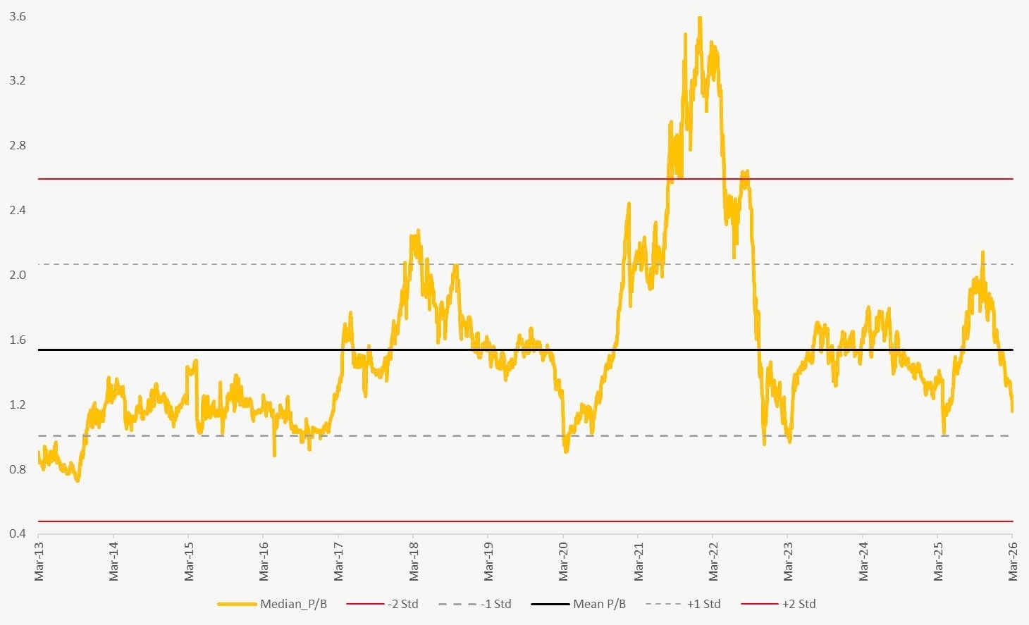 Thứ hai, yếu tố định giá đang trở nên hấp dẫn hơn khi nhiều cổ phiếu bất động sản đã điều chỉnh về vùng thấp, thậm chí giao dịch dưới mức P/B của năm 2022.