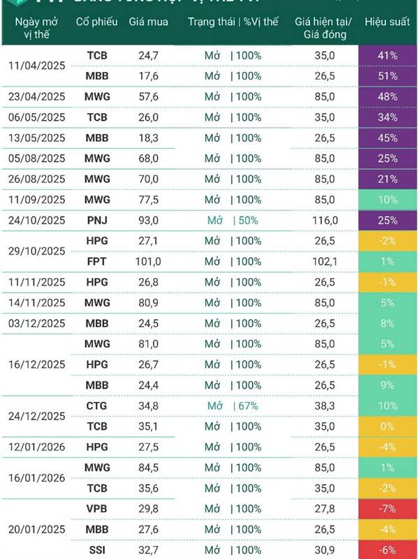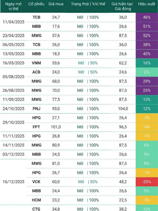 Nguyễn Mạnh Danh mục để những mã mua từ tháng 4/2025 để thấy tỷ lệ lợi nhuận cao chứ có giữ được tới bây giờ éo đâu. Toàn khuyến nghị excel thì nói thật đứa mới ra trường cũng làm được