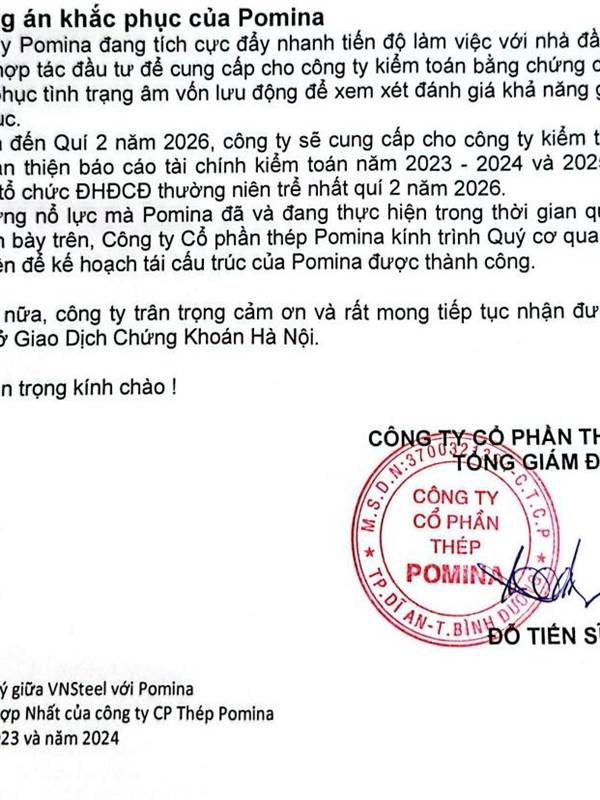 Có xin gia hạn bctc. Các bác ko phải lo đình chỉ đâu. Có chứng minh được kia Mou với TVN. Và đã gửi bctc hợp nhất 2023-2024 rồi.