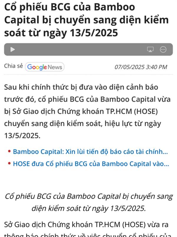 Án đình chỉ là chậm bctc năm 2024 6 tháng. Án kiểm soát làm chậm bán niên 2025 3 tháng. Hiện đang án hạn chế giao dịch nghĩa là cao hơn kiểm soát. Trong tuần này sẽ có tráp, không thoát đc.