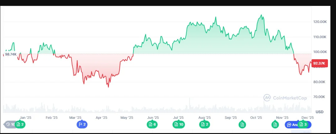 Tính đến ngày 4/12, Bitcoin đang giao dịch ở mức hơn 92.400 USD, theo CoinMarketCap, giảm khoảng 26% so với đỉnh. Giá trị vốn hóa của đồng tiền này là 1.840 tỷ USD.