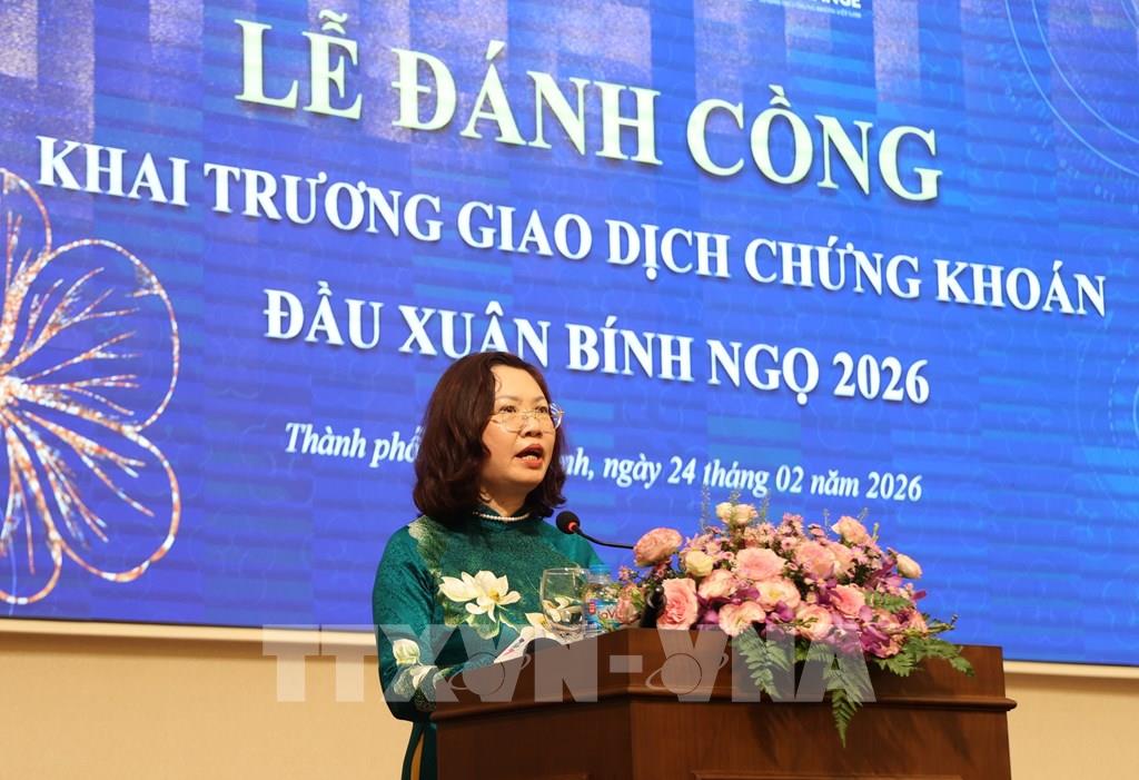 Sáng 24/2 (mùng 8 tháng Giêng năm Bính Ngọ), Sở Giao dịch Chứng khoán TP. Hồ Chí Minh (HoSE) đánh cồng khai trương giao dịch chứng khoán đầu xuân 2026, chính thức mở đầu năm giao dịch mới Bính Ngọ.