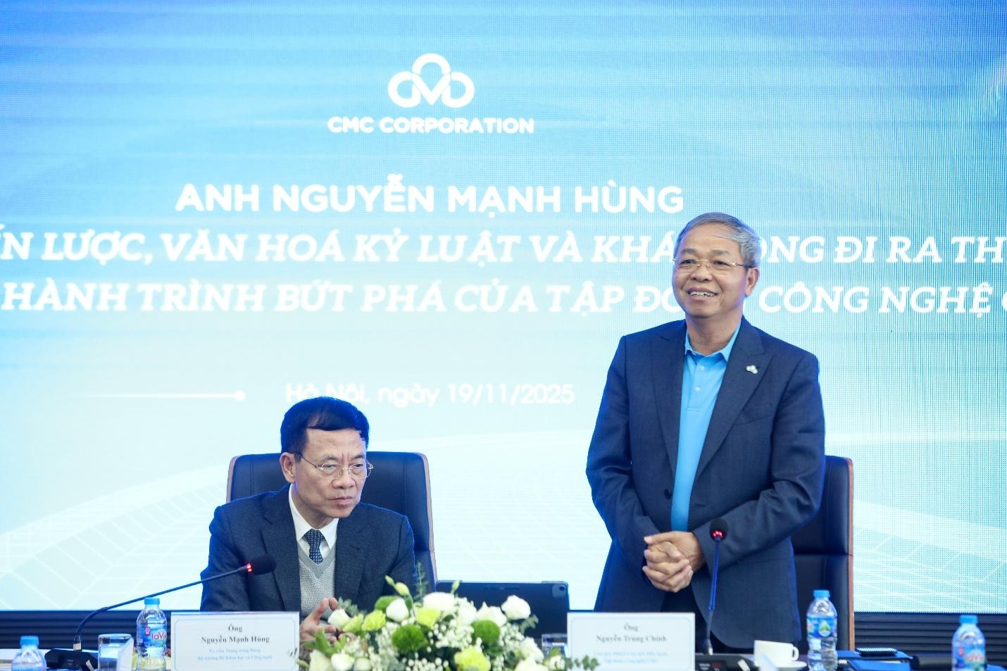 Chủ tịch Nguyễn Trung Chính nhấn mạnh: “Những gợi mở về tư duy chiến lược, văn hoá kỷ luật và con đường sản phẩm mà Bộ trưởng nêu ra hôm nay là những chỉ dẫn rất quý báu. CMC trân trọng ghi nhận và sẽ biến các khuyến nghị này thành hành động cụ thể để bứt phá mạnh mẽ trong chặng đường phát triển sắp tới của Tập đoàn.”