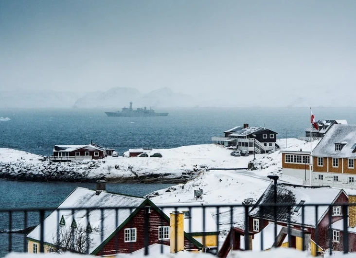 Tàu HDMS Vaedderen của Hải quân Đan Mạch hoạt động ngoài khơi Nuuk, Greenland, ngày 18/1. Ảnh: Reuters.