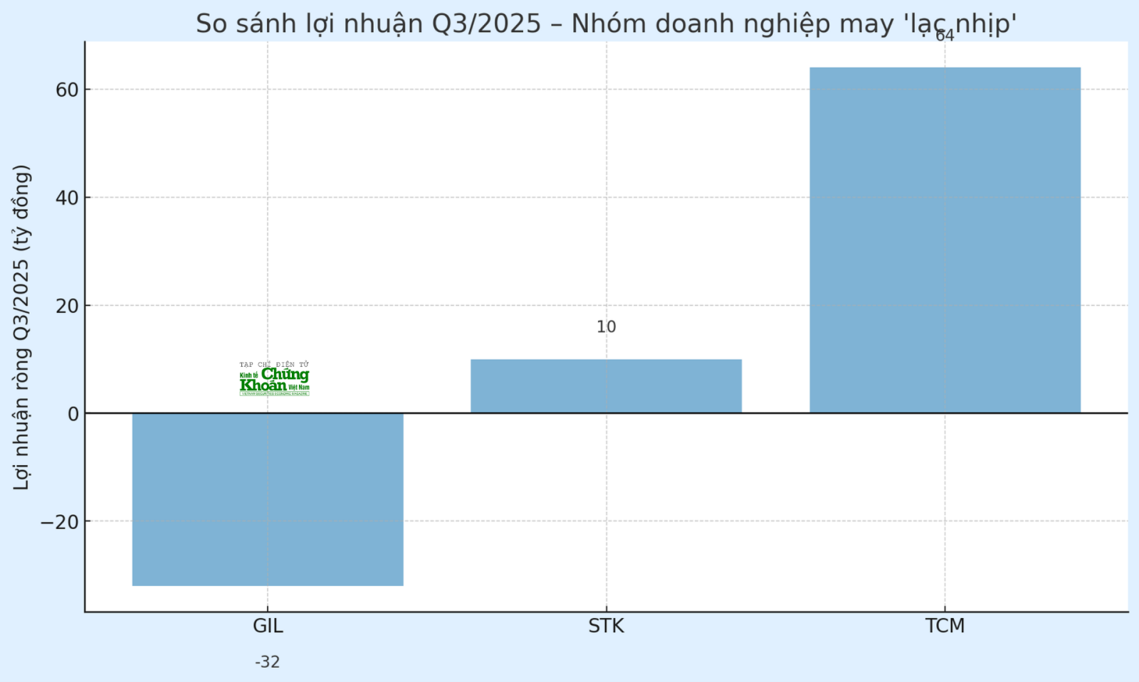 Hai thương hiệu lớn lâu đời là May 10 (M10) và May Việt Tiến (VGG) đều đang cho thấy khả năng xoay chỉnh linh hoạt. May 10 lãi 48,5 tỷ đồng, tăng 52% dù doanh thu giảm nhẹ; chủ yếu nhờ cắt giảm mạnh chi phí tài chính (-60%) và chi phí quản lý (-52%). Việt Tiến ghi nhận lãi 119 tỷ đồng, mức cao nhất bảy năm, nhờ doanh thu tài chính tăng 310% và lãi liên kết tăng gấp rưỡi. Lũy kế 9 tháng, Việt Tiến đạt 311 tỷ đồng lợi nhuận, vượt 18% kế hoạch năm.