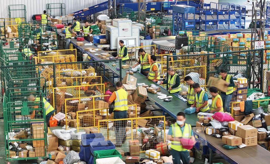 Nhân viên phân loại các đơn hàng tại trung tâm logistics ở Hồ Nam, Trung Quốc. Ảnh: THX/TTXVN